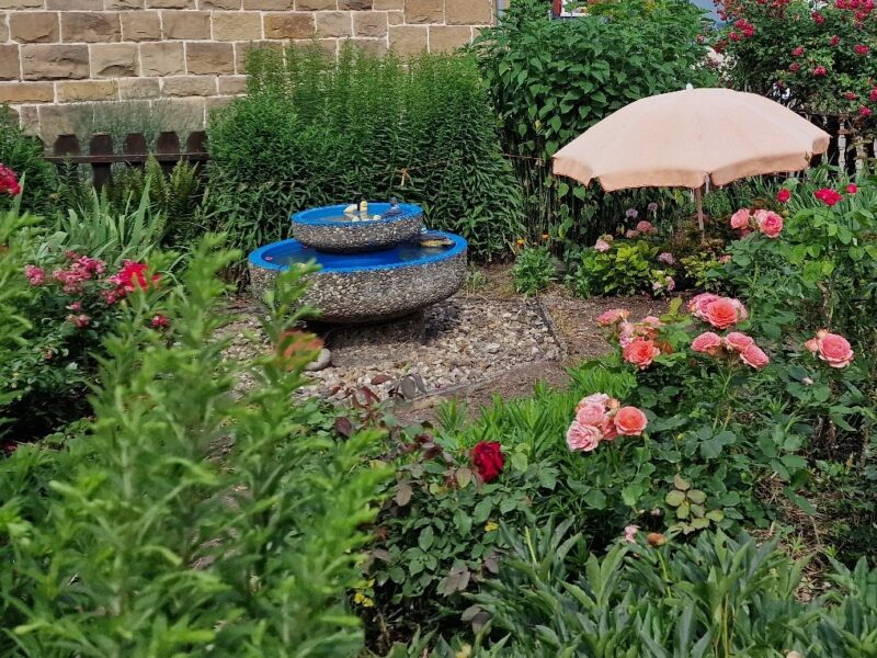 Rosen- und Staudenliebhaber kommen in diesem Garten voll auf Ihre Kosten. Teilweise sind die Rosenstöcke schon etwa 90 Jahre alt und werden liebevoll gepflegt.