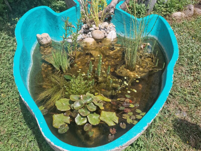 Es fehlt eigentlich nur ein Tümpel oder Teich in dem abwechslungsreichen Nutz- und Naturgarten. Für die kleineren Tierchen stehen überall kleine Wasserstellen bereit.