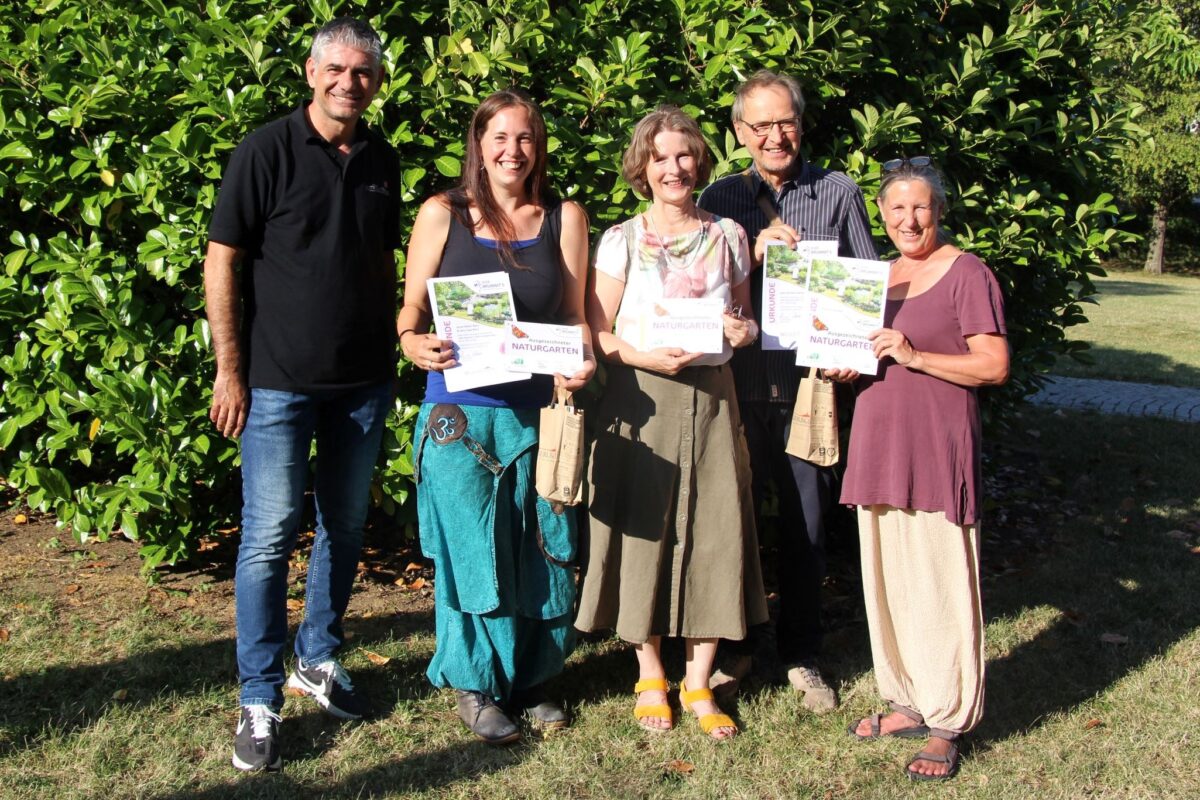 Die Jury hat jeden einzelnen Garten nach den 15 Kriterien bewertet. Nun steht das Ergebnis fest. Hier ein Bild unserer Preisverleihung und die drei bestplatzierten Naturgärten.