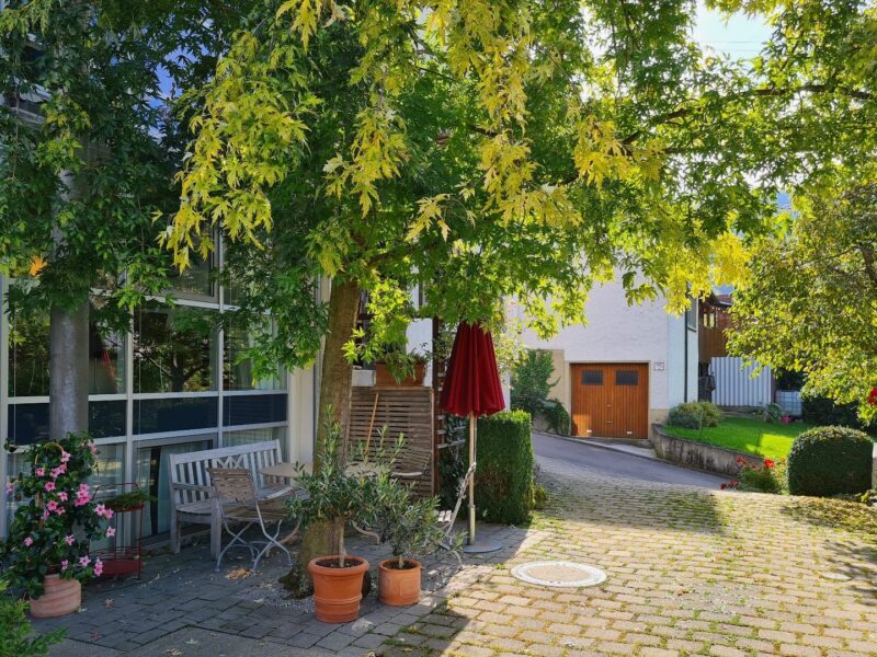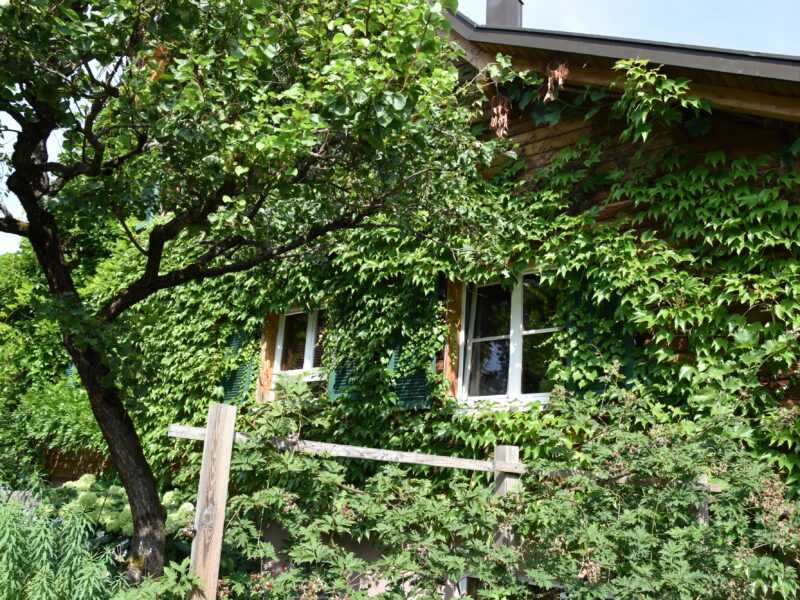 Schon beim ersten Blick auf das Haus fällt die üppige Fassadenbegrünung mit Efeu und Wildem Wein ins Auge – alles ist grün, und es summt und brummt lebendig an der Wand. Hinter dem Haus öffnet sich ein naturnaher Garten mit vielen wilden Ecken, Nisthilfen für Insekten und Vögel sowie einem Teich und weiteren Wasserstellen. Offenes Totholz ist als Polter hinter der Garage gestapelt und über bewusst offen gehaltene Wege erreichbar. Kaum eine Fläche bleibt unbewachsen, und die Vielfalt der Pflanzen ist beeindruckend. Dieser Garten zeigt eindrucksvoll, wie auch mitten in der Stadt ein lebendiger Lebensraum für Mensch und Tier entstehen kann.