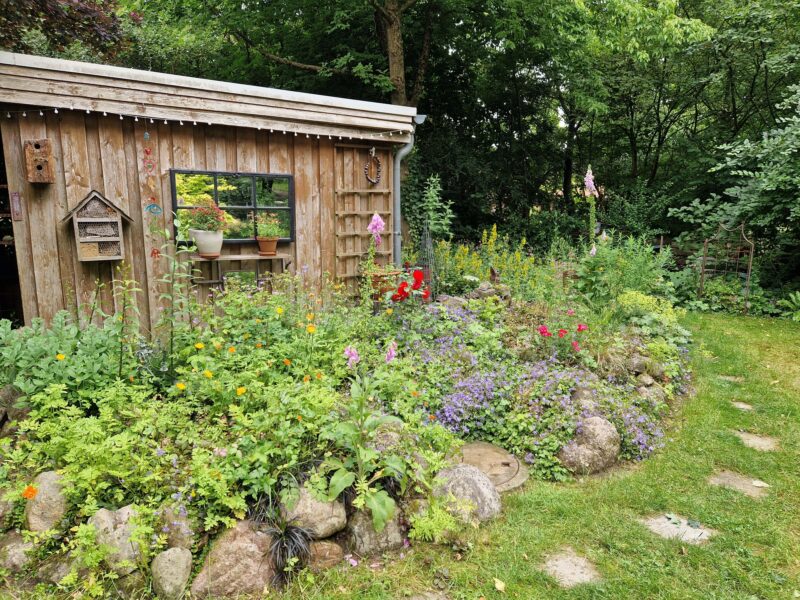 In Walsrode spendet der Garten von Silke Kappenberg und Tom Kirk einen Lebensraum für verschiedene Tiere. Im Teich leben Frösche und Molche, die Staudenbeete und Kräuter sind Nahrungsquelle für Insekten und alte Gehölze bieten Rückzugsraum für Vögel. Die Vielfalt und Naturbelassenheit ist das Erfolgsgeheimnis.