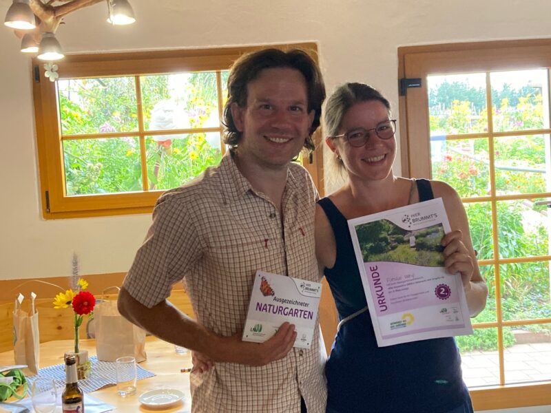 Die Jury hat jeden einzelnen Garten nach den 15 Kriterien bewertet. Nun steht das Ergebnis fest. Hier ein Bild unserer Preisverleihung und die drei bestplatzierten Naturgärten.