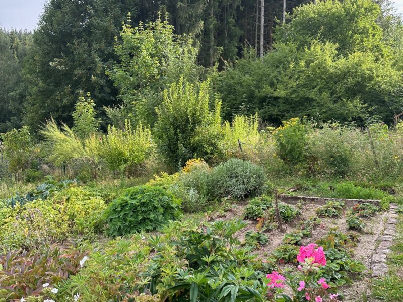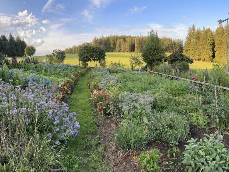 Um einen so vielfältigen, naturnahen Nutz- und Staudengarten auf knapp 1000 m Höhe zu gestalten und zu pflegen, bedarf es neben Wissen und Arbeit auch eine große Portion Leidenschaft. Diese ist jedem Beet und jedem Winkel im Garten und dem ganzen Hofgelände anzumerken. Gemüse aller Art, Beeren, einjährige Blumen, heimische Stauden, Sträucher und Bienenweiden. Ein Genuss für die Sinne und ein Gewinn für die Natur!
