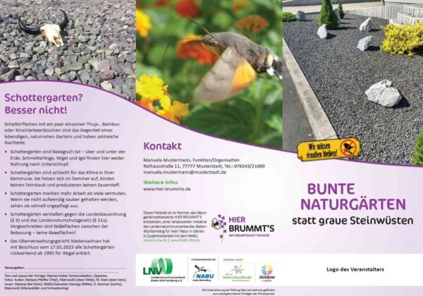 Dann nutzen Sie jetzt unser Informationsmaterial und klären Ihr Umfeld über die Problematik von Schottergärten auf.