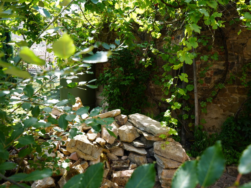 Funktionsflächen wie Wege, Mauern, Wände, Bänke oder Trockenmauern bauen wir immer so, dass sie nicht nur uns Menschen, sondern auch möglichst vielen Tieren und Pflanzen Lebensraum bieten.